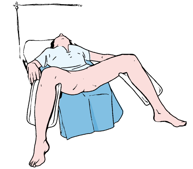 Pod pośladki ułożonej w pozycji ginekologicznej pacjentki podłożyć mniejszą serwetkę.
