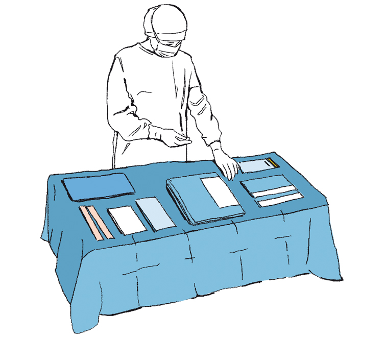 Nasuń pokrowiec w postaci worka na stolik Mayo.