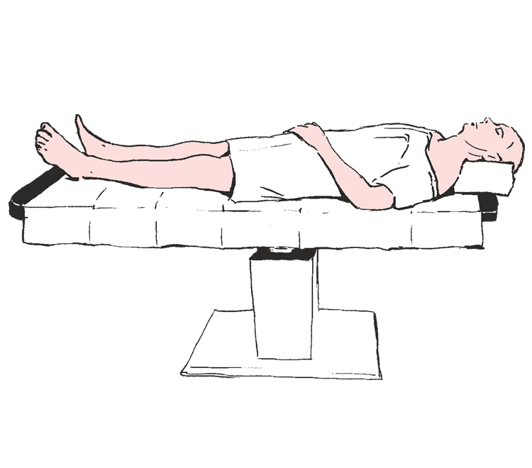 Rozwinąć dolną część obłożenia w kierunku dolnego krańca stołu operacyjnego zabezpieczając kończyny dolne pacjenta.