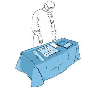 Rozwinąć boki obłożenia tak by swobodnie zwisały ze stołu operacyjnego.