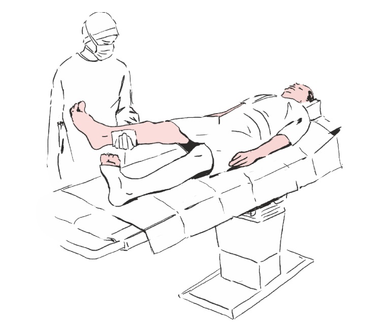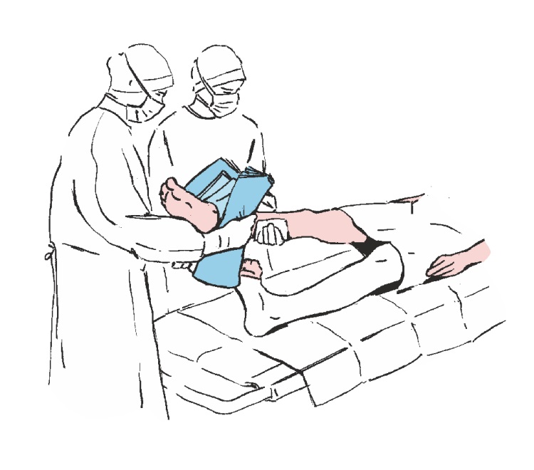 Unieść do góry kończynę podlegającą procedurze medycznej wykorzystując do tego celu załączone do zestawu ręczniki.