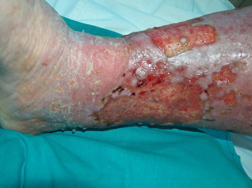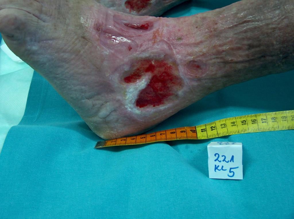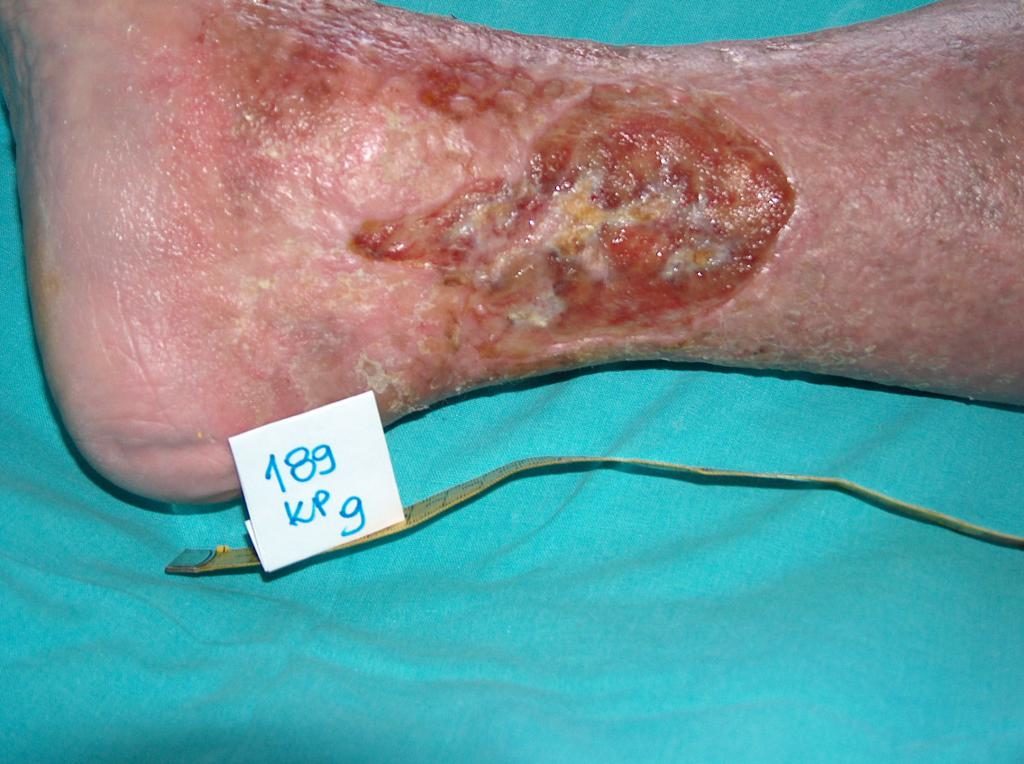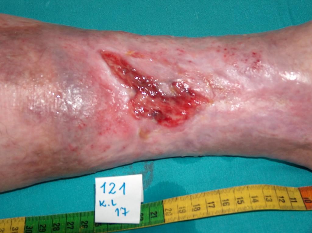 W około 80% przypadków przyczyną owrzodzeń goleni jest przewlekła niewydolność żylna. Owrzodzenia żylne są jej końcowym i najcięższym powikłaniem. W leczeniu owrzodzeń, a zwłaszcza ich zaawansowanych postaci, wymagana jest wielokierunkowa i interdyscyplinarna opieka nad chorym. Owrzodzenia żylne należą bowiem do ran przewlekłych, proces gojenia jest trudny i długotrwały, wymaga nakładu wielu środków. Rozległe i trwające latami rany często prowadzą do ograniczenia ruchów w stawie skokowym, zniekształcenia stopy i trwałego inwalidztwa (Fot. 1, 2, 3, 4).