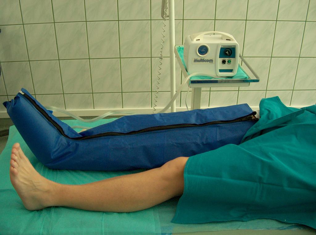 Podobne efekty może przynieść masaż – zarówno sekwencyjny masaż pneumatyczny (Fot. 6), jak i ręczny zmniejszający obrzęk i poprawiający powrót krwi żylnej w kierunku dosercowym.