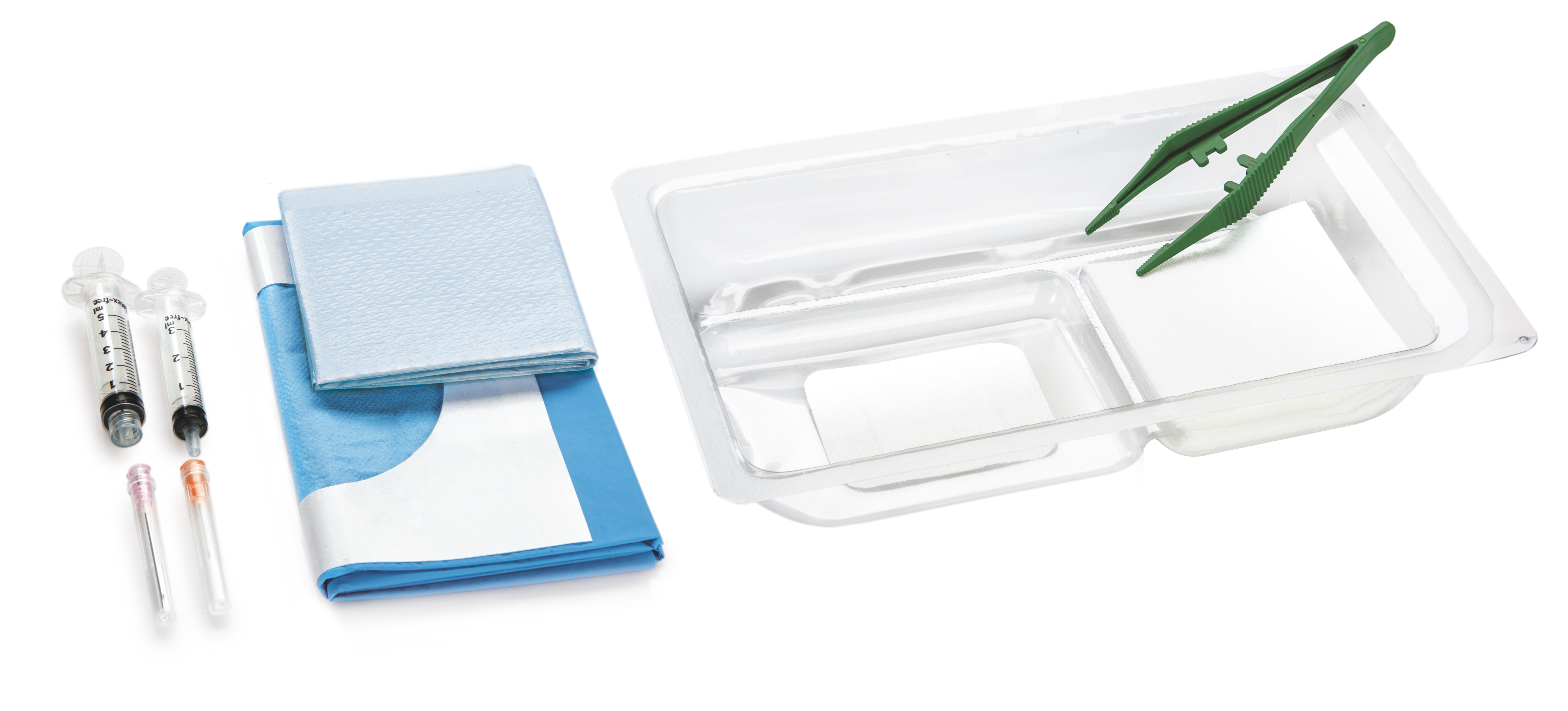 • skład zestawu jest optymalnie dostosowany do danej procedury medycznej, dlatego nie ma odpadu w postaci niewykorzystanego materiału jałowego