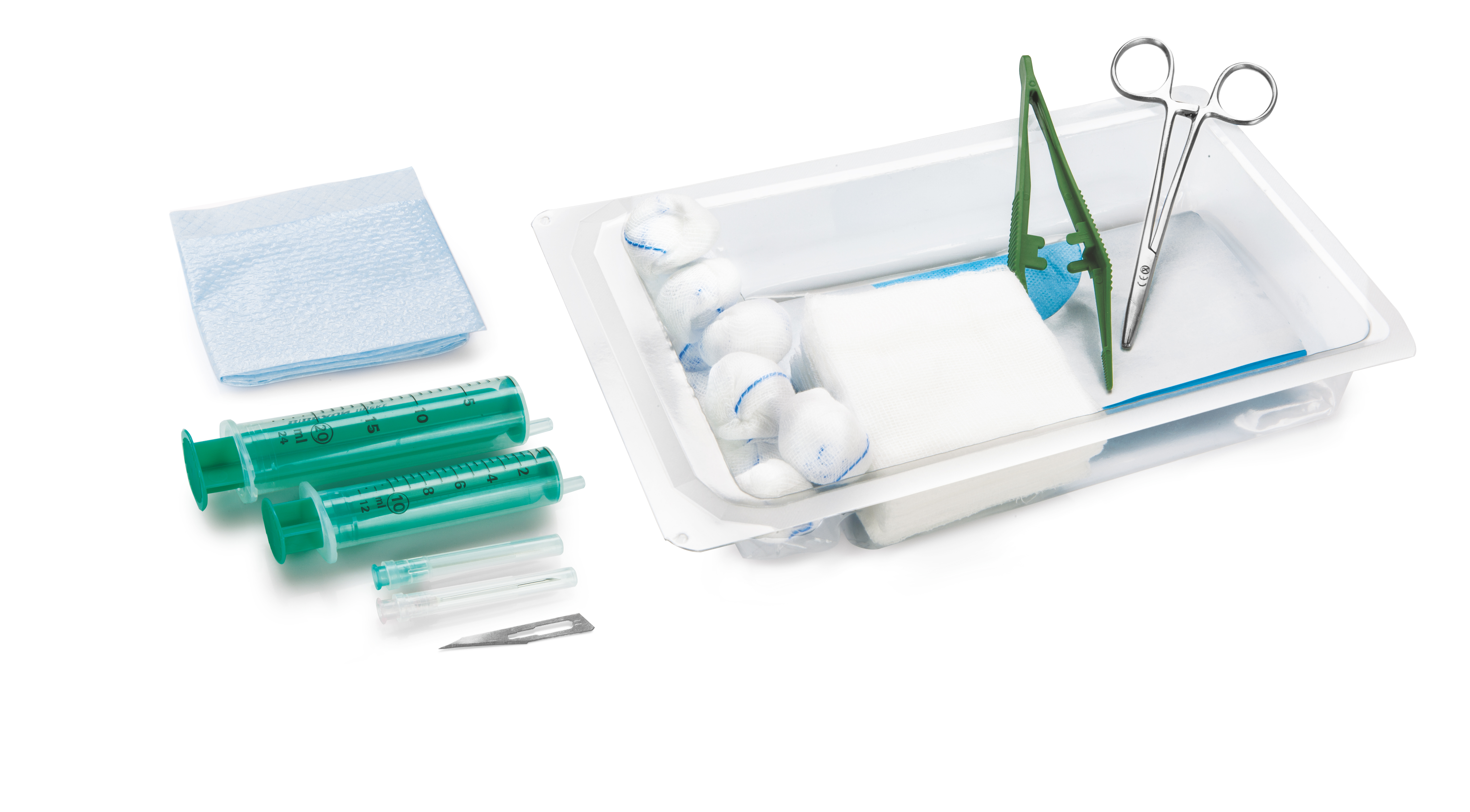 • kompozycja wyrobów z gazy, włókniny, tworzyw sztucznych oraz innych elementów wykorzystywanych w trakcie wykonywania jednej procedury medycznej